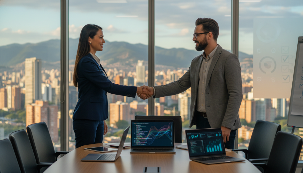 Para los mercados hispanohablantes, Colombia se posiciona como un hub tecnológico de primer nivel. Agencias como ToGrow y Codigos han demostrado ROI cuantificable: